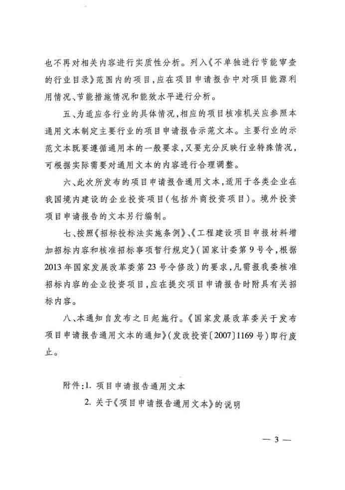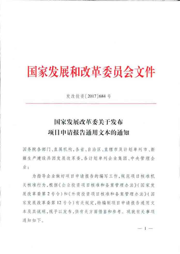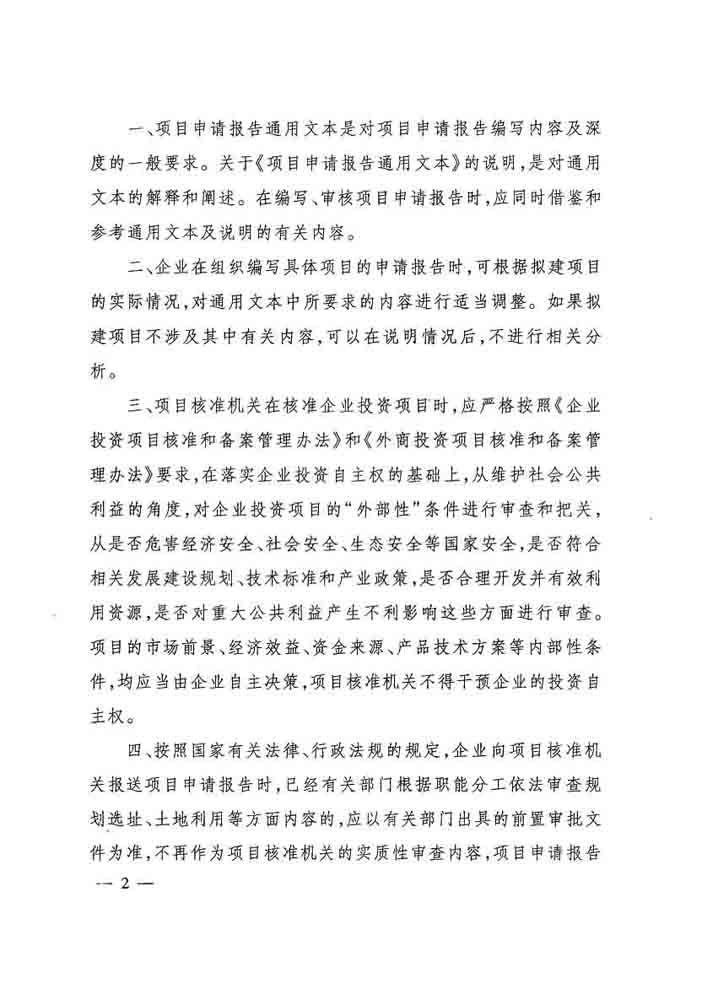 國家發(fā)改委關(guān)于發(fā)布項目申請報告通用文本的通知