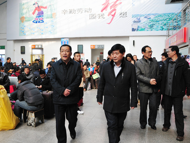 春節(jié)將至,為確保生產(chǎn)安全,讓群眾過一個(gè)歡樂祥和的節(jié)日,1月26日下午,市委常委、常務(wù)副市長(zhǎng)丁純帶領(lǐng)市公安局、安監(jiān)局等相關(guān)部門負(fù)責(zé)人,來到揚(yáng)州站檢查春運(yùn)情況,向奮戰(zhàn)在春運(yùn)一線的干部職工表示慰問。