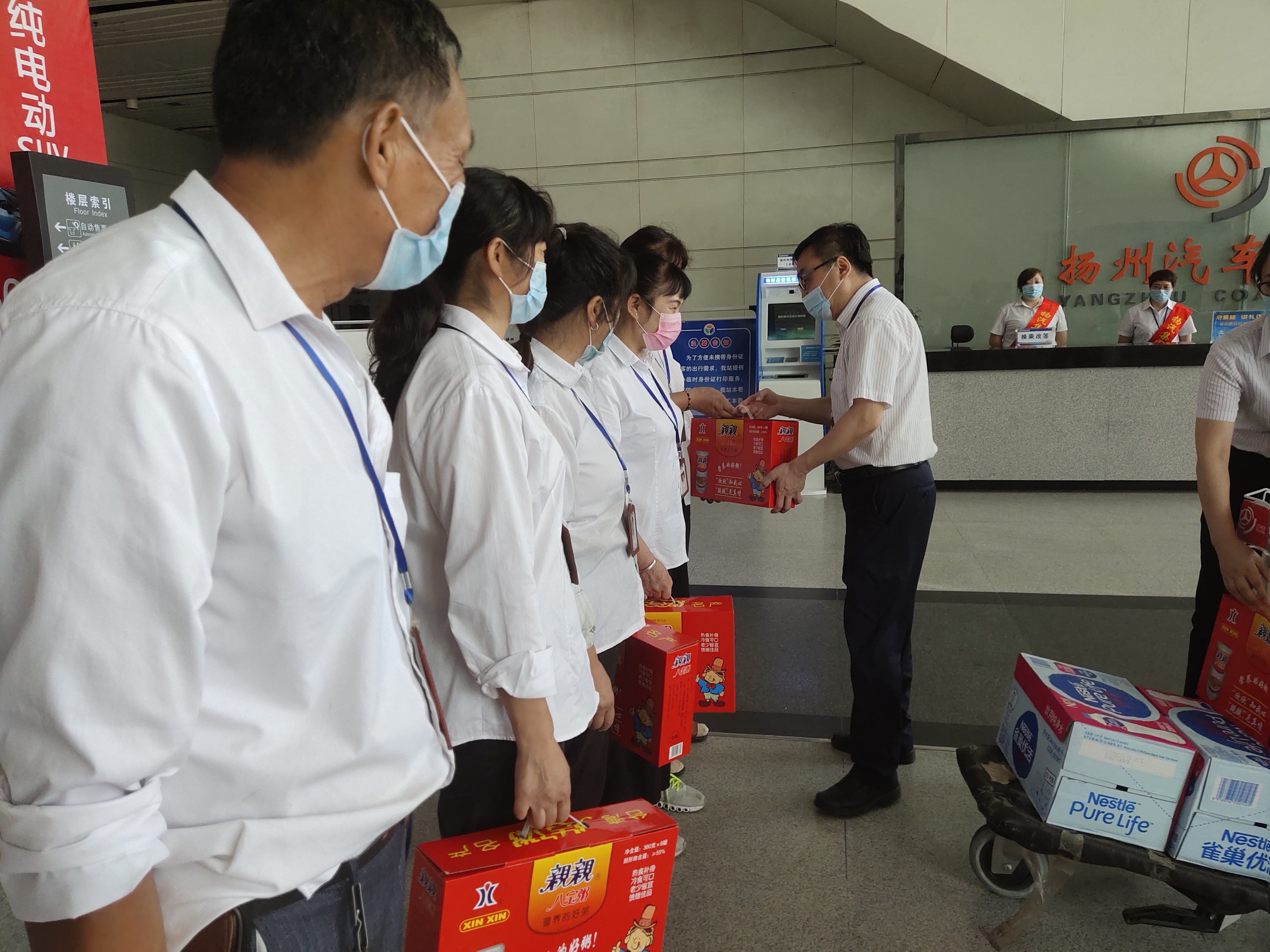揚州站:在疫情防控進入常態(tài)化的情況下,揚州站疫情防控工作絲毫沒有松懈,連日的高溫,給揚州站疫情防控工作也帶來了挑戰(zhàn)。為了進一步鼓勵一線職工的斗志,8月18日揚州站組織了送涼爽慰問活動,向高溫天氣中堅守崗位的志愿者、保潔等一線職工送去防暑降溫慰問品,在慰問中叮囑職工注意防暑降溫、勞逸結(jié)合,做好安全保障措施,確保勞動安全和身體健康。同時也進一步勉勵他們更好的做好服務(wù)工作,為打造平安揚州、幸福揚州、精致?lián)P州做貢獻。