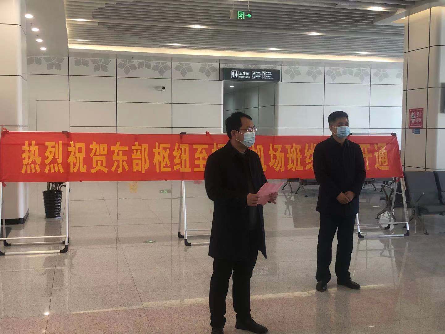 在東部樞紐交通中心現(xiàn)場,舉行了簡短的開通儀式,交通產(chǎn)業(yè)集團副總經(jīng)理、揚汽集團黨委書記、董事長龔宇峰和揚州泰州國際機場副總經(jīng)理徐長富出席了班線開通儀式。龔宇峰董事長在致辭中表示,在西站、東站和東部樞紐設立揚泰機場候機樓,是認真落實市委市政府《關于做好2020年民生幸福工程的通知》文件精神的重要工程,是滿足人民多層次多樣化民生需求,不斷提升城市客運接駁換乘水平的重要舉措。隨著東站和東部樞紐候機樓的設立以及機場班線的開通,揚泰機場在市區(qū)的客運服務網(wǎng)絡基本形成,高鐵和機場的零距離換乘成為現(xiàn)實,機場與城市的距離將被進一步拉近。