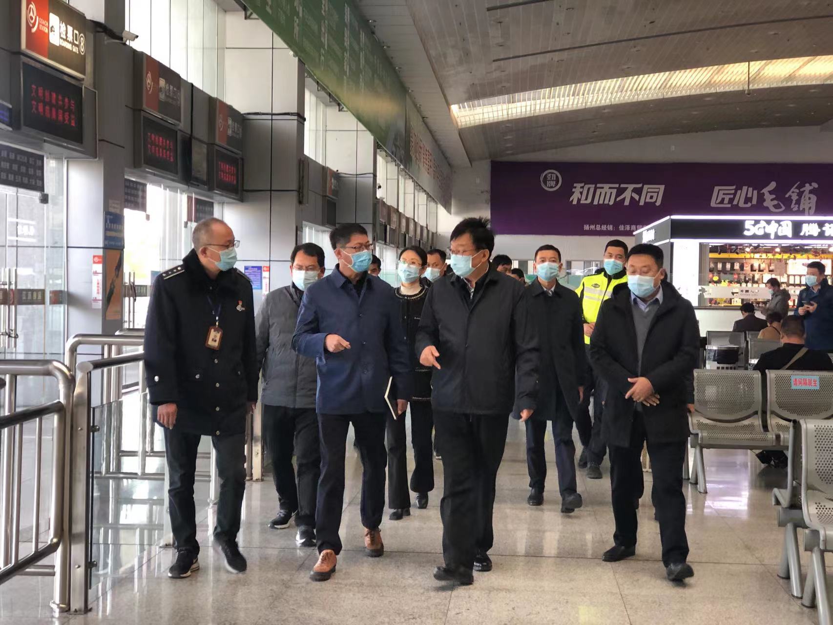 11月9日,副市長丁一帶隊(duì)來汽車東站檢查疫情防控工作,交通產(chǎn)業(yè)集團(tuán)黨委副書記、副董事長、總經(jīng)理方璇智,交通產(chǎn)業(yè)集團(tuán)副總經(jīng)理、揚(yáng)汽集團(tuán)黨委書記、董事長龔宇峰,揚(yáng)汽集團(tuán)副總經(jīng)理徐建波及相關(guān)部門負(fù)責(zé)人陪同檢查。